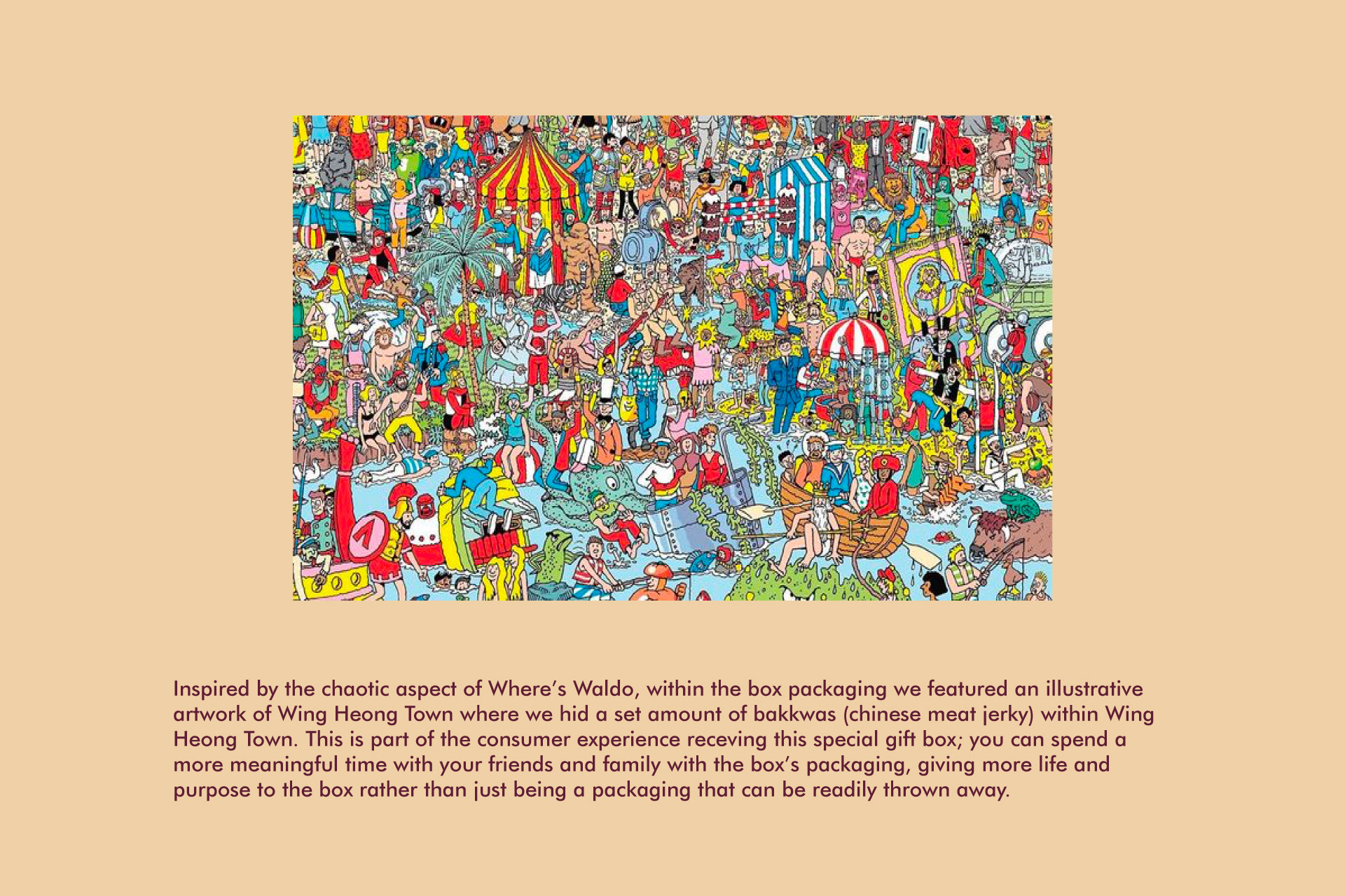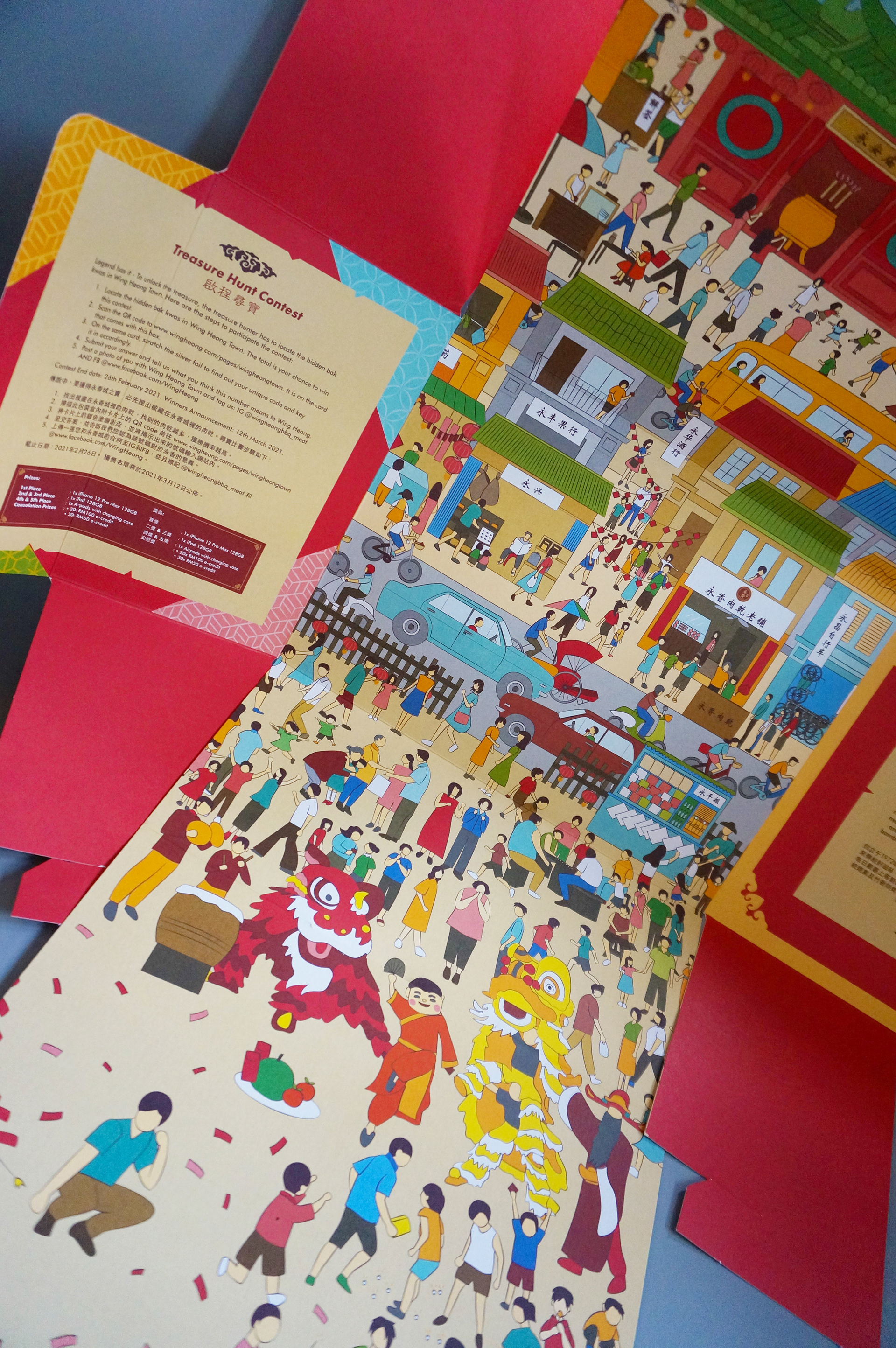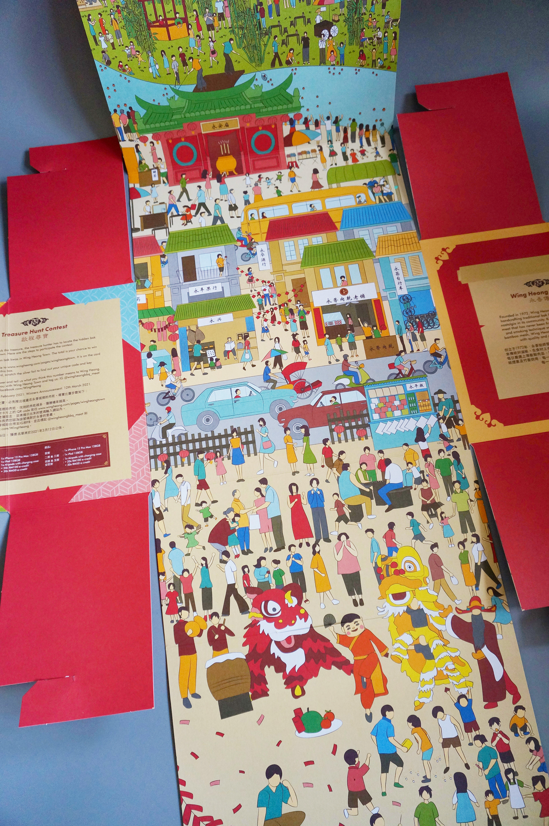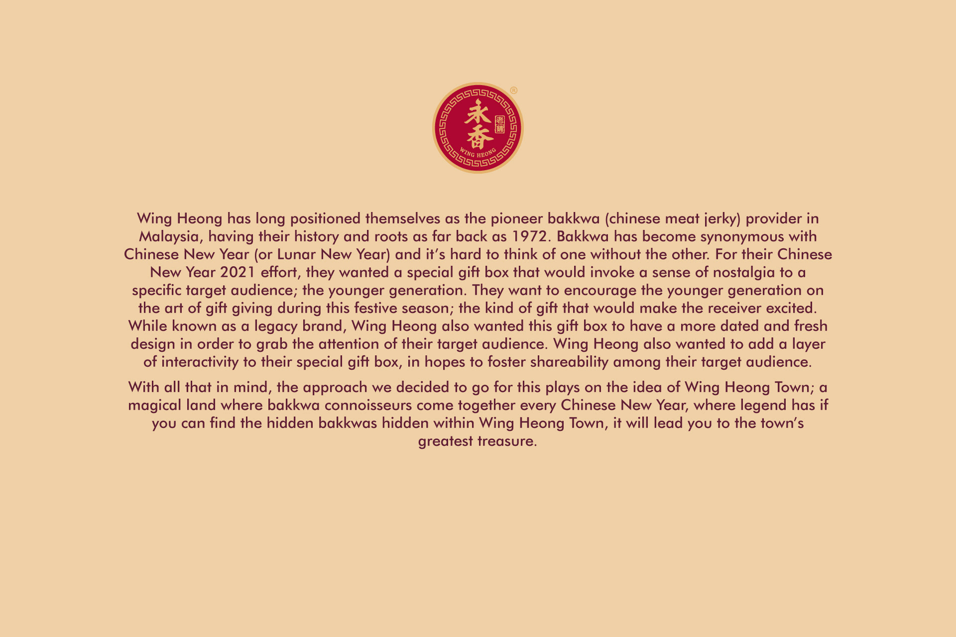 We created a customised CNY giftbox design that encapsulates and brings the users on a Wing Heong adventure. The fictional Wing Heong Town featured in the box are all hand drawn for the added touch of familiarity.